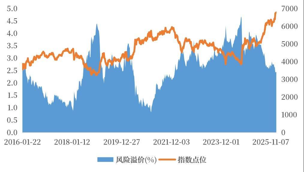 那么当前国内股票这类资产的性价比怎么样?这里用风险溢价这个数据来说明。